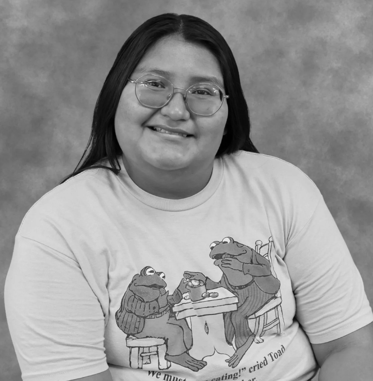Lyric Harris is enrolled with the Navajo Nation. Born in Pine Ridge and growing up around Rapid City, she holds an associate degree in Lakota Studies and a language certificate from Oglala Lakota College, and is currently pursuing her BA in Lakota Studies with a minor in Lakota Arts. Art has always been a vibrant part of Lyric's life, whether it's the music, the beading skills passed down from her father, or the expressive splash of paint. In addition to her coordination and studies, Lyric also dedicates her time to tutoring students at the college, offering academic support to those who need it. During her free time, she enjoys riding her moped around town and spending time with her family.